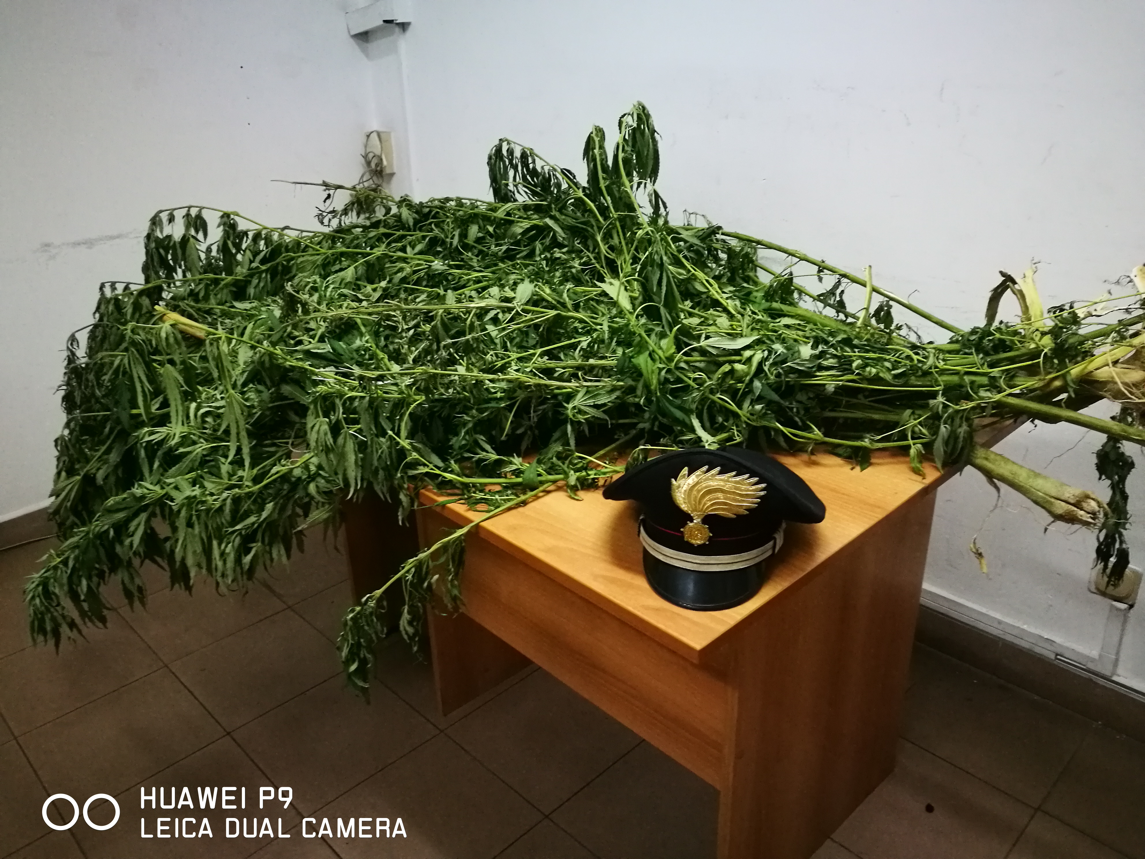 La piantagione tagliata e posta sotto sequestro contava circa 19 piante di marijuana tutte perfettamente tenute e di altezza variabile tra 1,50e 2 mt circa, nonché tutta l’attrezzatura per la coltivazione e il materiale utilizzato per l’irrigazione. Il Cosentino, dopo le procedure di legge, su disposizioni dell’A.G., è stato sottoposto agli arresti domiciliari nella propria abitazione.
