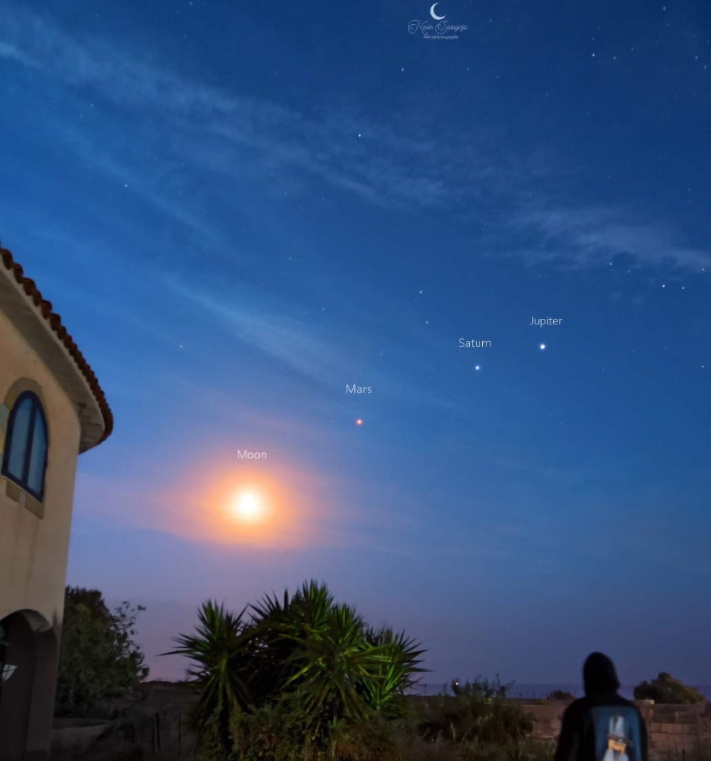«Venerdì 17 aprile alle ore 05:25 – racconta Kevin Saragozza a Siracusa Times – mi sono posizionato in giardino dove ho potuto immortalare questo bellissimo allineamento».
