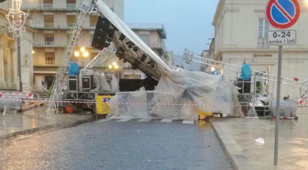 Ad Avola le forti raffiche di vento e la pioggia battente hanno causato il crollo di una parte del palco allestito in occasione del Carnevale e sito a Piazza Umberto I.