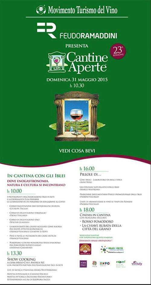 Si tratta dell’evento enoturistico più importante in Italia che, durante l’ultimo weekend di maggio, permetterà ai wine lovers di vivere a pieno il turismo del vino. Per l’occasione la cantina aprirà le porte ai tanti visitatori che incontreranno il gusto del buon vino siciliano del territorio del sud-est e dei suoi produttori.