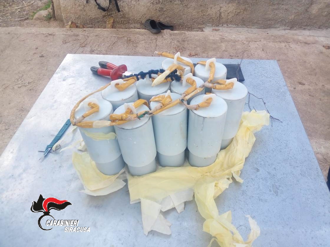 La perquisizione ha portato altresì al rinvenimento di un potente ordigno esplosivo artigianale, costituito da diversi cilindri di plastica riempiti di esplosivo e collegati fra loro da una miccia che ne avrebbe permesso la deflagrazione contemporanea.