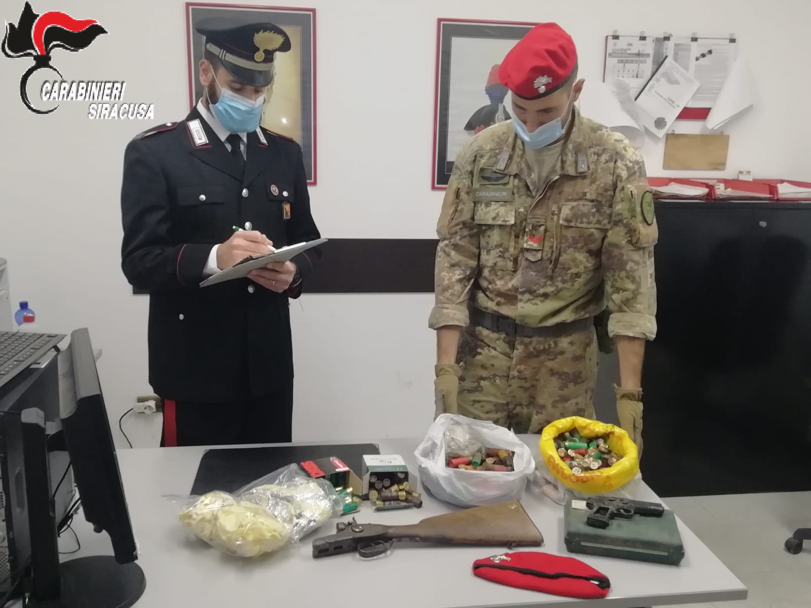 I Carabinieri della Stazione Carabinieri di Melilli, coadiuvati da quelli dello Squadrone Eliportato Cacciatori Sicilia, hanno condotto ieri pomeriggio un’efficace operazione anticrimine effettuando una perquisizione in un isolato casolare sito nelle campagne di Melilli, all’interno del quale hanno rinvenuto un piccolo arsenale abusivamente detenuto da C. Z., 32enne di Sortino, già noto per alcuni suoi trascorsi penali.
