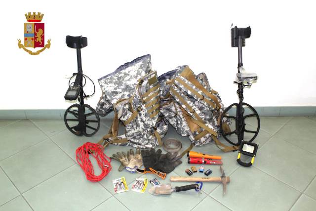 Venivano sequestrati, pertanto, quattro metal detector, alcune lampade tascabili e arnesi per lo scavo.