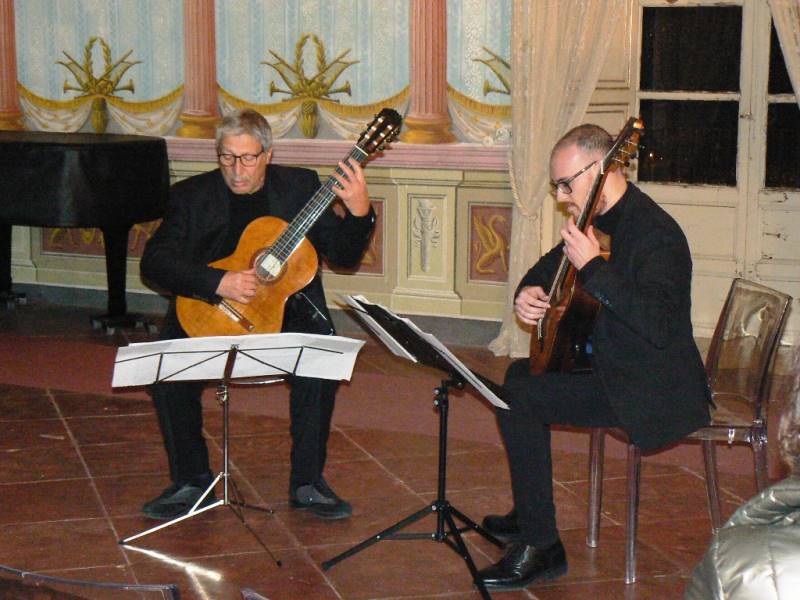 Questa sera alle ore 20, si dà spazio al duo di chitarre composto da Sergio Camelia e Ivano Tornello che presenteranno un viaggio tra Ottocento e Novecento con trascrizioni inedite. In programma “Concertante” Antoine de Lhoyer (1768-1852) Duo Concertant Op.31 n.3 I Allegro agitato; II Romance – Andante sostenuto; III Rondo – Poco vivace Mario Castelnuovo-Tedesco (1895 – 1968) da Les Guitares Bien Tempérées op.199: X Prélude et fugue en Si bémol majeur IV Prélude et fugue en Mi majeur George Gershwin (1898-1937) Three Preludes for Piano (Trascrizione per due chitarre di Sergio Camelia) I. Allegro ben ritmato e deciso; II. Andante con moto e poco rubato; III. Agitato Mario Castelnuovo-Tedesco (1895 – 1968) da Les Guitares Bien Tempérées op.199: XIII Prélude et fugue en Sol majeur VII Prélude et fugue en Do dièse mineur Johann Kaspar Mertz (1806 – 1856) Ständchen Mauro Giuliani (1781-1829) Grandi Variazioni Concertanti Op.35.