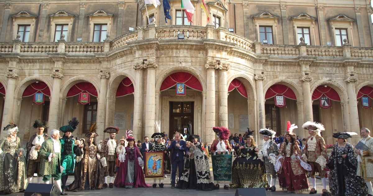 Una cornice suggestiva, quella messa su dall’associazione Corteo Barocco di Noto con la collaborazione dei Musici e Sbandieratori Città di Noto: infatti per circa quattro ore, turisti e curiosi hanno potuto ammirare diversi gruppi storici provenienti da ogni angolo della Sicilia, ognuno in rappresentanza della propria storia e della propria identità.