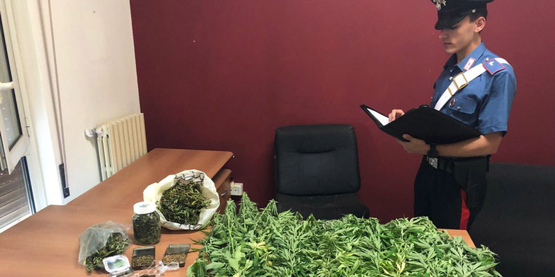 Al termine delle attività, i Carabinieri hanno rinvenuto 34 piante di cannabis indica, circa 25g di sostanza stupefacente del tipo “hashish”, circa 350g di sostanza stupefacente del tipo “marijuana” nonché semi e materiale per la pesatura ed il confezionamento delle dosi di stupefacente.