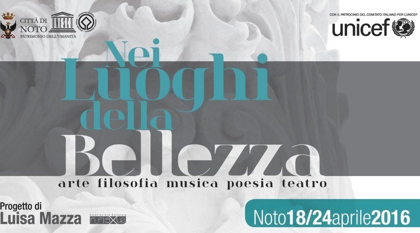Il fotografo Pier Raffaele Platania ha realizzato un fotoracconto con le immagini più significative della scorsa edizione. Il video “Bellezza è gioia e musica!” del 2015, con il Maestro Marco Mencoboni e il Patrocinio dell’Unicef sarà proposto al pubblico. La storica dell’arte Francesca Gringeri Pantano presenterà Il barocco si mostra…nelle carte topografiche dei Principi Nicolaci di Villadorata custodite nell Biblioteca Comunale di Noto. Un altro appuntamento della Rassegna è I Luoghi dell’Arte con la partecipazione dell’attore Alessio Boni. In cartellone anche Quali Luoghi – Quali Confini a cura di Roberto Galaverni; Poesia nei Luoghi della Bellezza con i poeti Tiziano Broggiato, Luigi Carotenuto, Antonio Di Mauro; La Verità sotto il velo della Bellezza – Codice Shakespeare a cura di Elvira Siringo per il 400 anniversario della morte di Shakespeare.