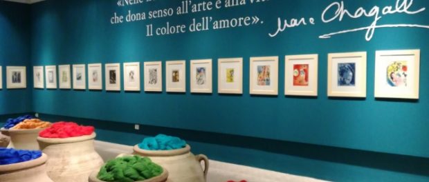 Tra le opere esposte di Chagall un grande olio del 1960, proveniente da collezione privata, dal titolo Les Amoureux sur fond jaune; oltre 100 acqueforti dal ciclo della Bibbia; e la coloratissima e mai prima esposta serie di Litographie I, dove si ripercorre l’evoluzione della poetica di Chagall attraverso i temi più cari all’artista. Di Missoni sono esposti gli studi cromatici e compositivi realizzati a partire dai primi anni 70, i quadri tessili e i suoi celebri Arazzi patchwork di tessuti a maglia tra i quali il più grande da lui creato. Come egli stesso descrive: «…ogni pezzetto va osservato attentamente in quanto ha una sua storia e presi singolarmente hanno una loro vita».