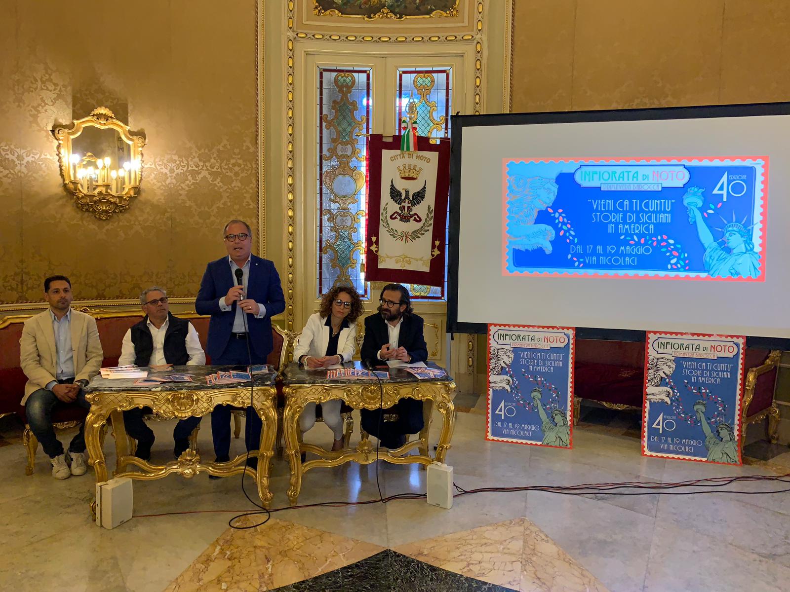 News Noto. «L’Infiorata è la festa della nostra comunità che quest’anno vuole rappresentare l’intera Sicilia, che diventa mamma e riabbraccia i suoi figli che vivono dall’altra parte dell’Oceano». Con queste parole il sindaco Corrado Bonfanti ha aperto stamattina la conferenza stampa di presentazione della 40^ Infiorata di via Nicolaci, il cui tema quest’anno è “Vieni ca ci cuntu – Storie di Siciliani in America”.