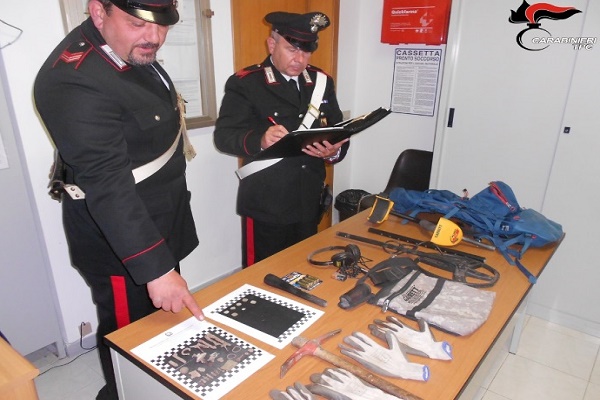 Noto. I Carabinieri della Sezione Tutela Patrimonio Culturale di Siracusa, unitamente a quelli delle Stazioni di Testa dell’Acqua e Canicattini Bagni, nell’ambito di servizi congiunti finalizzati a contrastare il fenomeno degli scavi clandestini, hanno sorpreso due persone, all’interno dell’area archeologica di “Noto Antica”, intenti a effettuare delle ricerche archeologiche non autorizzate. I due “tombaroli”, alla vista dei militari, hanno tentato la fuga cercando di disfarsi degli attrezzi che poco prima avevano utilizzato per gli scavo, ma sono stati prontamente bloccati.