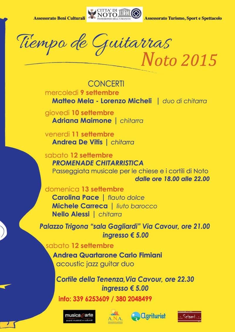 News Noto: “Tiempo de Guitarras“, la rassegna chitarristica internazionale a cura dell’associazione “Musica e Arte” e del suo direttore artistico, il chitarrista Nello Alessi, è giunta quest’anno alla sua seconda edizione. Inserita nell’ambito del cartellone estivo netino “Effetto Noto“, l’iniziativa è patrocinata dall’assessorato ai beni culturali e dall’assessorato al turismo, sport e spettacolo del comune barocco. L’evento, che prevede un ambizioso ed articolato programma, dal 9 al 13 settembre, propone cinque recitals tenuti dai più apprezzati nomi dell’attuale panorama chitarristico internazionale.