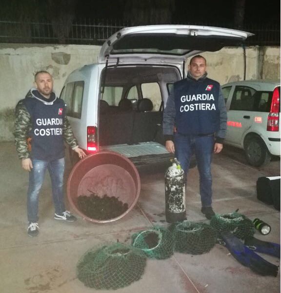 Si procedeva al sequestro del pescato e degli strumenti di pesca, nonché all’elevazione a carico dei pescatori di tre processi verbali di constatazione e contestazione di illecito amministrativo per le seguenti violazioni: pesca subacquea in orario notturno, pesca subacquea sportiva con l’ausilio di autorespiratore e pesca di riccio di mare oltre il limite consentito, per un totale di 12.000 euro. I ricci, ancora vivi, venivano rigettati in mare.