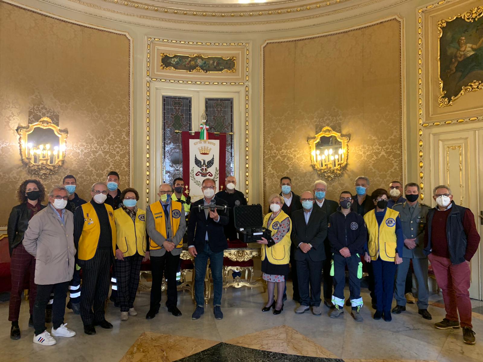 Stamattina, nella Sala degli Specchi di Palazzo Ducezio, la simbolica consegna, alla presenza del sindaco Corrado Bonfanti, del dott. Franco Cirillo, primo vicegovernatore del Lions Club International Distretto 108 Yb, dell’avv. Giovanni Giuca, presidente del Distretto Zona 20, dei soci del service club dell’ispettore Francesco Campo, comandante del distaccamento di Noto del Corpo Forestale, e dei volontari della Protezione Civile Avcn.