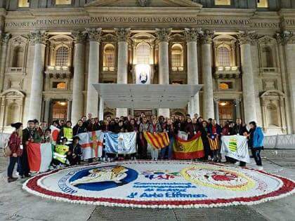 News Noto: tanta emozione e profondi motivi di gioia per il mondo dell’Alfombrismo che con la Commissione Internazionale, Presieduta da Vicenta Pallares I Castello, e rappresentata da infioratori provenienti da ogni parte del Mondo, ha partecipato due settimane fa al Giubileo della Misericordia. Due giorni molto intensi che hanno avuto l’apice nel momento dell’Udienza Giubilare del Santo Padre in Piazza San Pietro, ed in quello della realizzazione dei due tappeti con tecnica mista: una ai piedi dell’Altare Maggiore all’interno della Basilica e l’altra all’esterno nella scalinata nel “ventaglio” di Piazza San Pietro davanti alla pensilina del Papa.