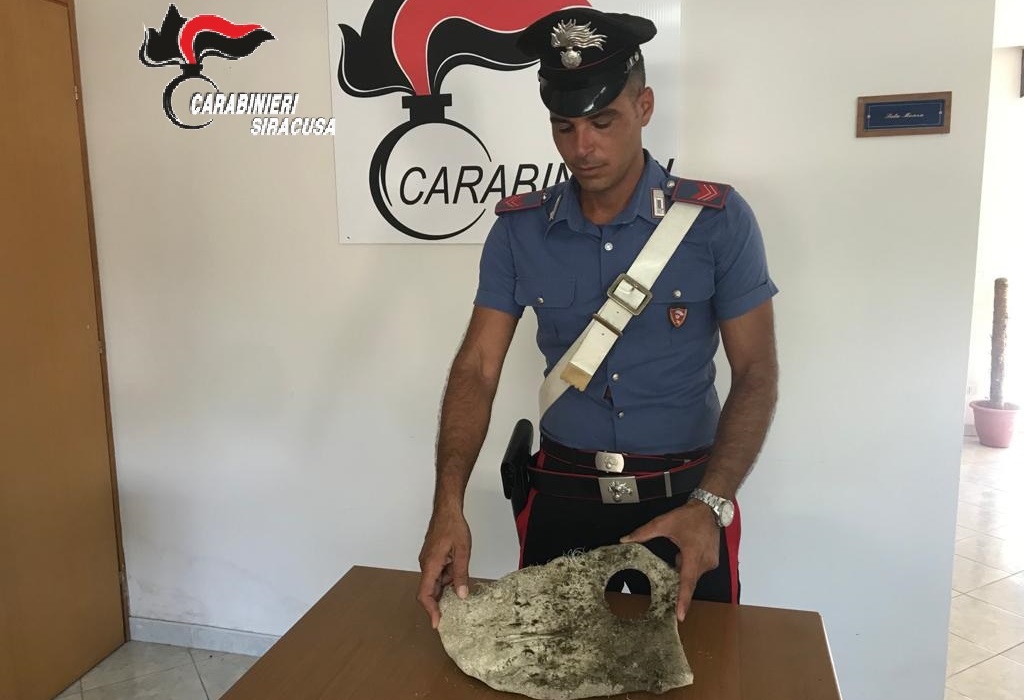 Il militare, con le dovute cautele, ha riportato in superficie il prezioso reperto archeologico consegnandolo ai colleghi della Stazione Carabinieri di Pachino che lo custodiranno fino alla consegna ai Carabinieri della Sezione Tutela Patrimonio Culturale di Siracusa.
