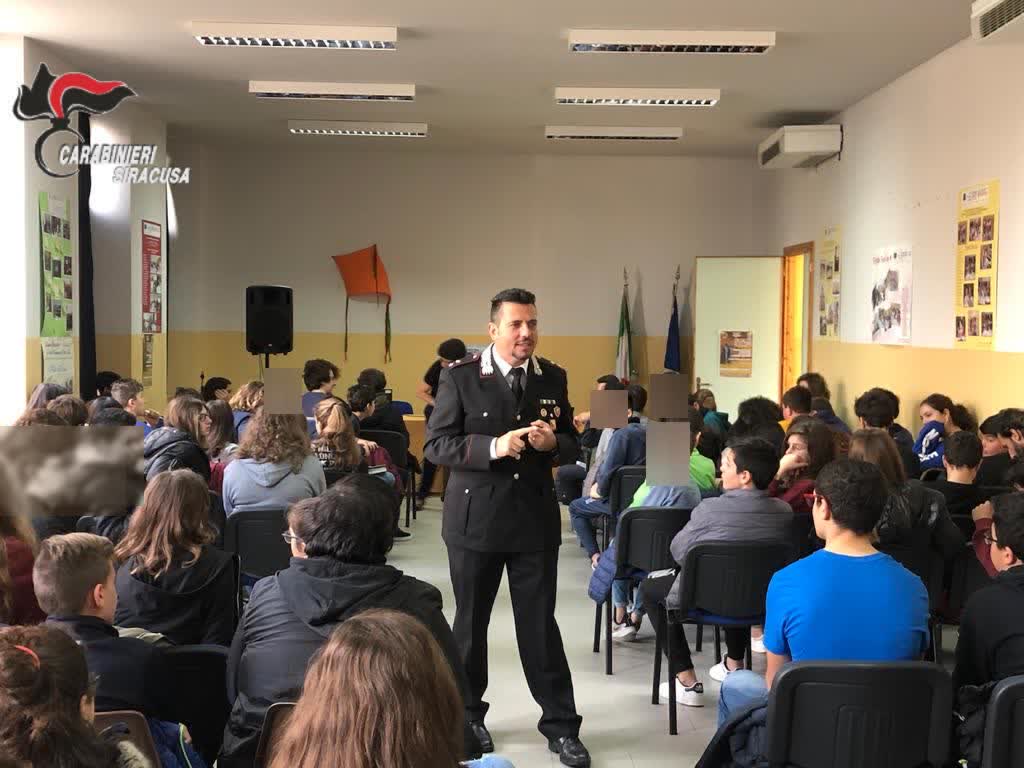 News Palazzolo Acreide. I Carabinieri della Compagna di Noto, nell’ambito del progetto di cultura e diffusione della legalità promosso dal Comando Provinciale Carabinieri di Siracusa in collaborazione con gli Istituti Scolastici della Provincia, hanno incontrato gli studenti delle terze classi della scuola media Vincenzo Messina di Palazzolo Acreide.