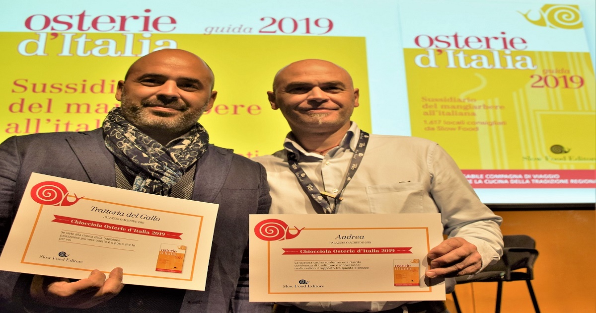 A ricevere i riconoscimenti sono stati Andre Alì, chef e patron di Andrea e Gianni Savasta, chef e titolare (insieme ad Eros Rizza) della Trattoria del Gallo, che hanno preso parte alla cerimonia di consegna delle chiocciole svoltasi nella giornata di chiusura di Terra Madre Salone del Gusto di Torino 2018, il più grande evento mondiale legato al cibo di qualità.