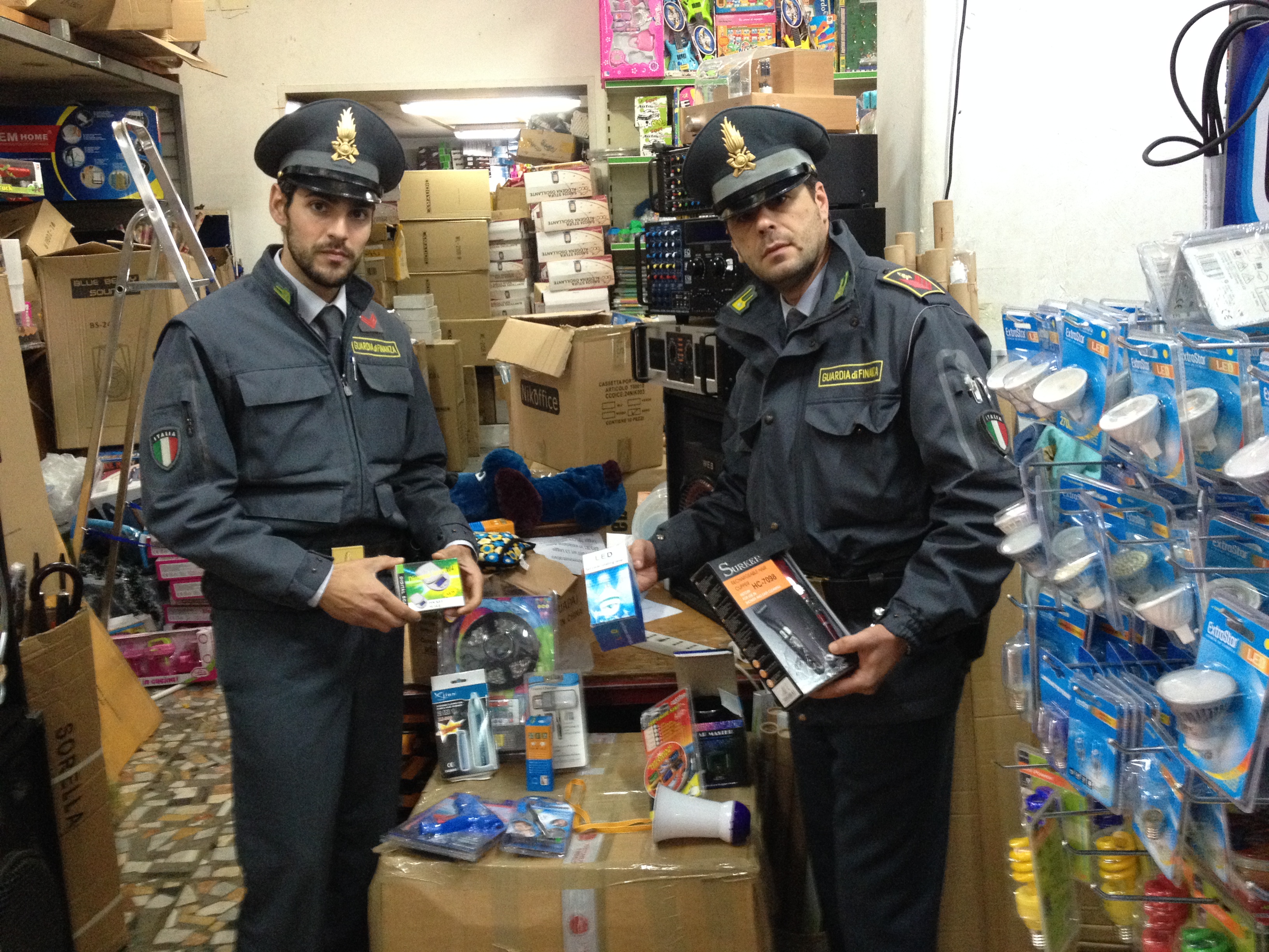 Il controllo è stato quindi esteso al negozio ed al magazzino della ditta, sita nei pressi della stazione ferroviaria di Palermo dove sono stati rinvenuti e sequestrati ulteriori 28.059 pezzi di materiale di vario genere (tra cui materiali elettrici, utensili da cucina, batterie, telecomandi, giocattoli, occhiali da lettura, radio, lettori mp3). Si tratta di prodotti per i quali non è stata rispettata la normativa sulla sicurezza e quindi potenzialmente pericolosi per la salute.