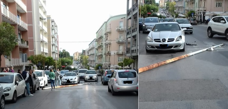 Il fatto è accaduto in viale Teocrito, questa mattina intorno alle ore 10, quando un’auto una mercedes (vedi foto) stava transitando in quel tratto di strada e all’improvviso si è visto cadere un palo dell’illuminazione pubblica precipitato sullla strada appena pochi centimetri dalla sua autovettura. Fortunatamente è riuscito a fermarsi, niente traumi riportarti ma solo tanto spavento. Coinvolta anche un’altra auto in sosta al momento dell’incidente.