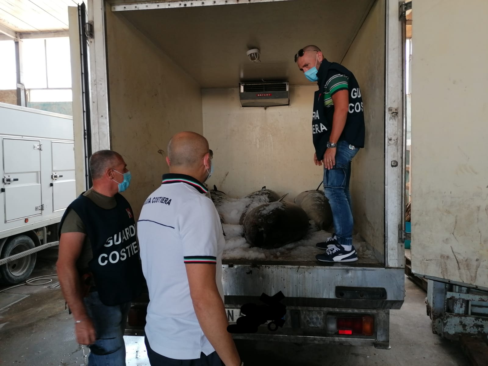 Nell’ambito dei controlli quotidiani posti in essere dal Personale della Sezione di Polizia Marittima della Capitaneria di Porto di Siracusa e dell’Ufficio minore dipendente di Portopalo di Capo Passero è stata riscontrata, all’interno di un furgone isotermico che si trovava dentro il deposito di una pescheria di Portopalo, la presenza di 5 esemplari di tonno rosso del peso complessivo di circa 750 kg.