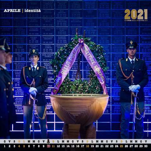 Tre immagini in particolare simboleggiano lo spirito di servizio: il mese di marzo con l’ispettore Santa Perrone e la piccola Elena Luisi salvata dai suoi rapitori, il mese di agosto con il reparto mobile che presta soccorso agli abitanti della Val di Fiemme, il mese di dicembre con i poliziotti impegnati nell’attività connessa all’emergenza Covid 19, a salvaguardia della salute pubblica.