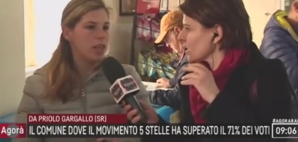 “Ho 26 anni, 4 bambini e sono disoccupata: non ho votato perché i politici ti promettono un lavoro e poi non fanno niente” – ha raccontato alla giornalista Benassi una giovane madre di famiglia – . Una vera e propria analisi in diretta della situazione a Priolo, post elezioni, reduce da alcune vicende giudiziarie legate all’amministrazione. Priolo Gargallo che si propone come principale avamposto del grillismo in Italia, dopo la scelta a “5 stelle” i cittadini si aspettano grandi cambiamenti, una vera e propria uscita di emergenza dalle condizioni di disagio e povertà che li circondano.