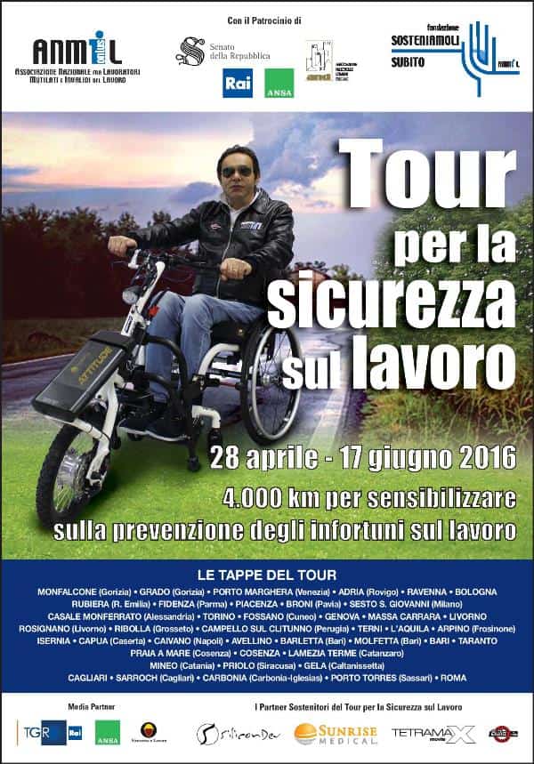 Tappa dopo tappa, le sedi ANMIL presenti su tutto il territorio organizzano eventi e iniziative in collaborazione con le amministrazioni comunali, con le scuole e con aziende territoriali. Il Tour giungerà alla sua ultima tappa a Roma il 17 giugno con la consegna, a Montecitorio, delle firme raccolte per una petizione lanciata dall’ANMIL a sostegno della prevenzione degli infortuni sul lavoro e della tutela delle vittime che è stata diffusa anche via web.