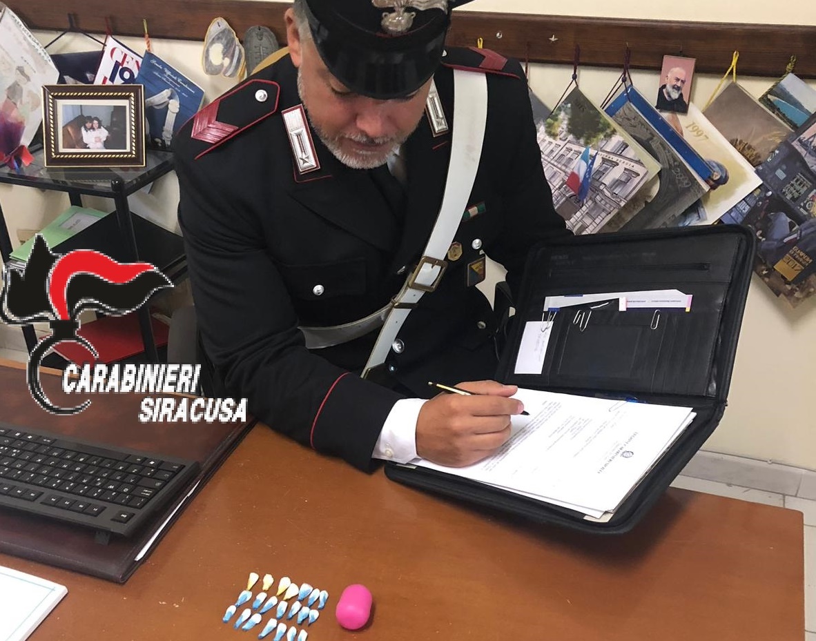 News Rosolini. Nel corso della giornata di ieri i Carabinieri del Nucleo Operativo e Radiomobile della Compagnia di Noto, hanno tratto in arresto in flagranza del reato di detenzione ai fini di spaccio di sostanza stupefacente C. G., classe 1988, già noto alle forze dell’ordine per i suoi precedenti di polizia.