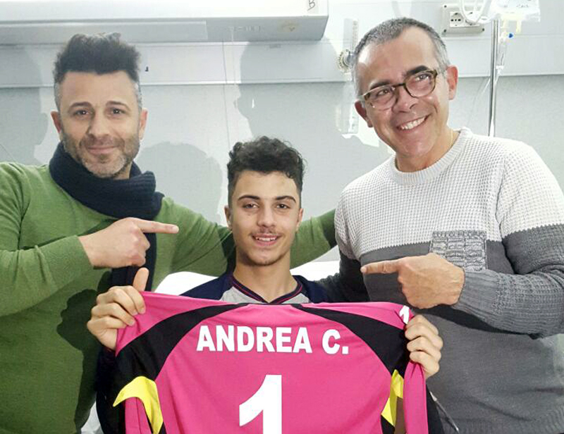 “Sono veramente felice e voglio ringraziare tutti ma proprio tutti per gli attestati di stima ricevuti, – ha tenuto a sottolineare il dirigente del Palazzolo Stefano Frassetto dopo aver incontrato Andrea – non lo dico per falsa modestia ma domenica ho fatto soltanto quel che sapevo fare. E’ giusto ricordare, tra l’altro, che non ero da solo, visto che ho agito con la collaborazione degli addetti ai lavori che si trovavano sul posto. Andrea è sulla strada della guarigione e si riprenderà velocemente, ne sono certo, freme per indossare la sua nuova maglia numero uno e spero che ci riuscirà. Questa foto, dunque, la dedico a lui, a suo padre ma anche a tutti coloro i quali nei giorni scorsi hanno sostenuto la famiglia”.