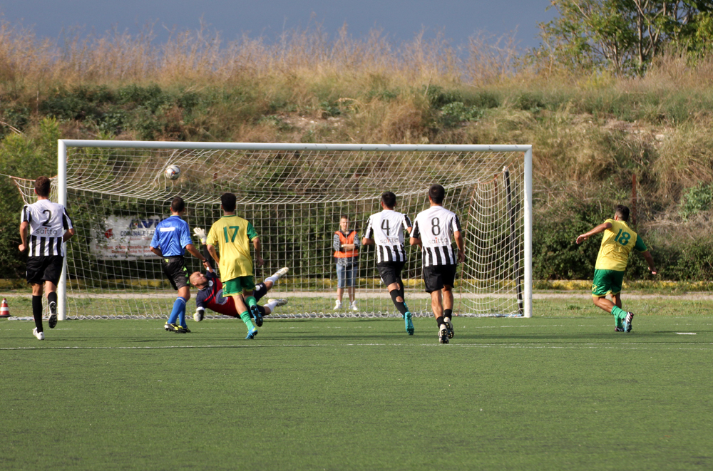 Al 70’, dopo una fase di stanca, l’episodio che cambia le sorti dell’incontro, in seguito ad un plateale fallo in area ai danni di Germano: dal dischetto è Luca Strano a calciare forte sotto la traversa e a battere Vitale per la rete dell’1 a 1.