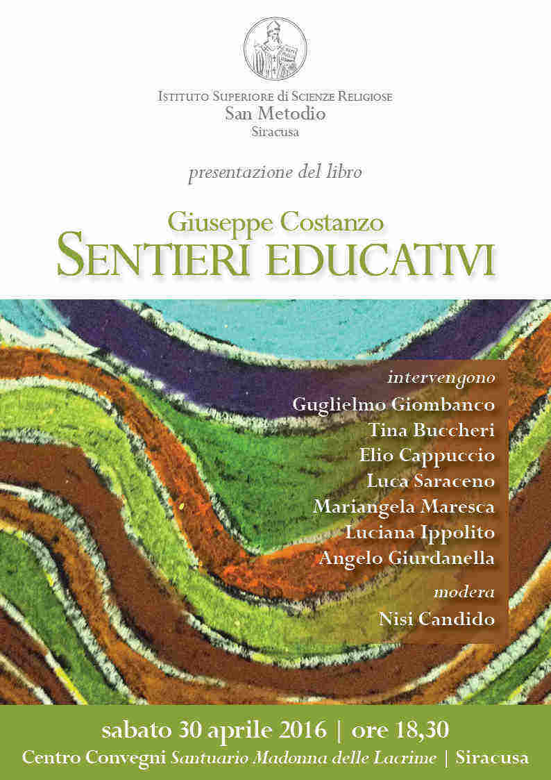 Domani, sabato 30 aprile alle ore 18.30, al centro convegni del Santuario della Madonna delle Lacrime di Siracusa, sarà presentato il libro “Sentieri educativi” di mons. Costanzo. Il tema educativo è preso in considerazione soprattutto nella sua dimensione di attualità, se non proprio di emergenza. Ne vengono affrontati vari aspetti: l’educazione vissuta nell’ambito della famiglia, il rapporto tra educazione e libertà individuale e sociale, il valore delle virtù come la giustizia e la fortezza, l’educazione delle nuove generazioni alla vita di fede, la responsabilità dei mass-media nella formazione di una coscienza libera e vera, l’educazione alla legalità, alla fraternità e alla pace. Sono tutti temi che mostrano la sensibilità dell’autore a proposito di questioni molto attuali, su cui la fede cristiana può dire una parola di chiarimento e di giuda.