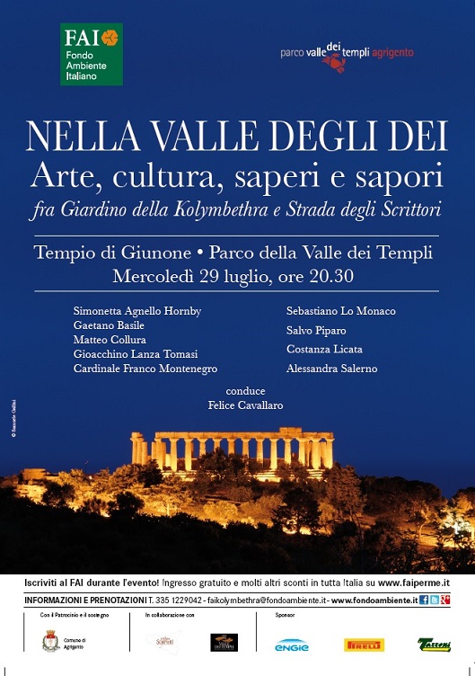 L’ evento, organizzato dal FAI, si terrà mercoledì ad Agrigento a partire dalle 20.30, ai piedi del Tempio di Giunone nella Valle dei Templi. Sono previsti ospiti di grande spessore artistico – culturale: la scrittrice Simonetta Agnello Hornby, la cantante Alessandra Salerno, gli attori Salvo Piparo e Costanza Licata e i giornalisti Matteo Collura e Gaetano Basile, oltre a Gioacchino Lanza Tomasi di Lampedusa.