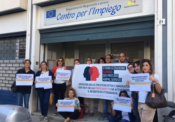 “Stabilizzazione subito degli operatori precari di Anpalservizi” questa la richiesta dei collaboratori (alcuni di loro ventennali) dell’agenzia tecnica del Ministero del Lavoro che hanno manifestato stamattina davanti ai Centri per L’impiego (Cpi) di Palermo e Catania. E’ solo l’ultima azione svoltasi in Sicilia e, in contemporanea, in tutta Italia, con l’unico obiettivo di chiedere l’immediata stabilizzazione dei 654 precari (collaboratori e tempi determinati, ndr).