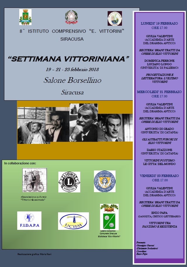 Le iniziative partiranno il 19 febbraio con la “Settimana vittoriniana”. Fino al 23 febbraio, nel salone “Paolo Borsellino” di palazzo Vermexio, si terranno letture di brani e conferenze affidate a docenti delle università di Palermo e Catania e al saggista e critico letterario, Enzo Papa. La mostra, invece, sarà inaugurata a marzo.
