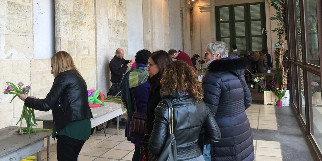 Sembra di trovarsi in una delle famose “floralies” con tutte le creazioni dei fioristi presenti disposte all’interno di un porticato dell’edificio di via Trento. Inoltre, grazie al laboratorio curato dall’esperta e relatrice palermitana Noemi Lupo, i visitatori hanno potuto scegliere tra i diversi disegni geometrici proposti e colorare il proprio mandala, simbolo nella tradizione religiosa buddista e induista del cosmo.