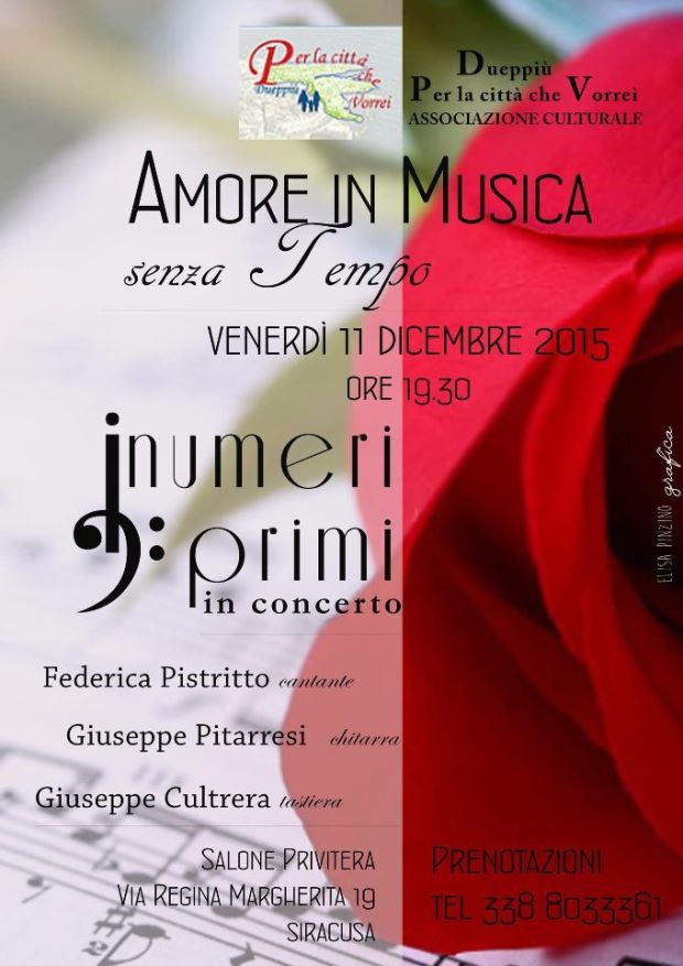 News Siracusa: si svolgerà venerdì 11 dicembre, presso l’Istituto Privitera di viale Regina Margherita, il concerto “Amore in musica senza tempo”, promosso dall’associazione culturale “Per la città che vorrei”, presieduta da Sergio Pillitteri.