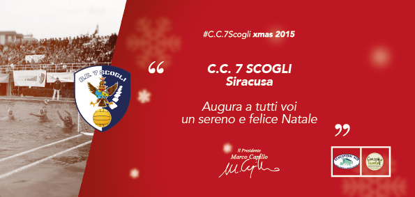 “Adesso riposiamoci un po’ prima di riprendere con i consueti ritmi serrati nel 2016 poiché, con la prima squadra, alla ripresa del campionato, fissata per il 9 Gennaio, ci attende un impegno arduo a Catania contro la Nuoto Catania mentre con il settore giovanile inizieranno i vari campionati di categoria . In conclusione, auguro a tutti i nostri tesserati, ai nostri ragazzini del settore giovanile ed alle loro famiglie, ai giocatori delle prima squadra, ai nostri tecnici, a tutto il consiglio direttivo 7 Scogli, ai nostri sponsor, ai nostri partner, ai nostri sostenitori ed a tutti gli appassionati di pallanuoto un Sereno e Felice Natale”.