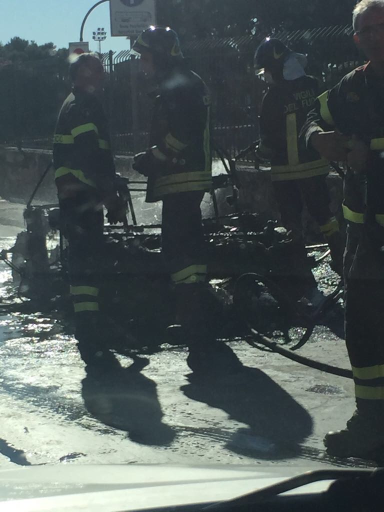 Siracusa. Momenti di paura in viale Teracati per una “minicar” in fiamme a pochi metri dalla tomba di Archimede. Gli occupanti del mezzo, sono fortunatamente illesi.