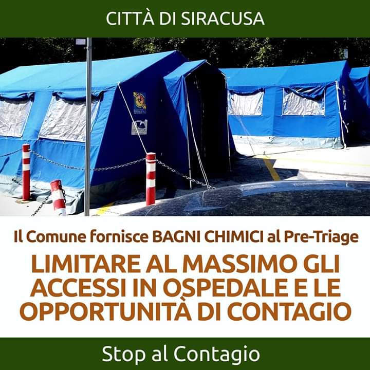 La scorsa settimana il Comune di Siracusa ha fornito degli appositi bagni chimici a supporto delle tende del Pre-Triage.