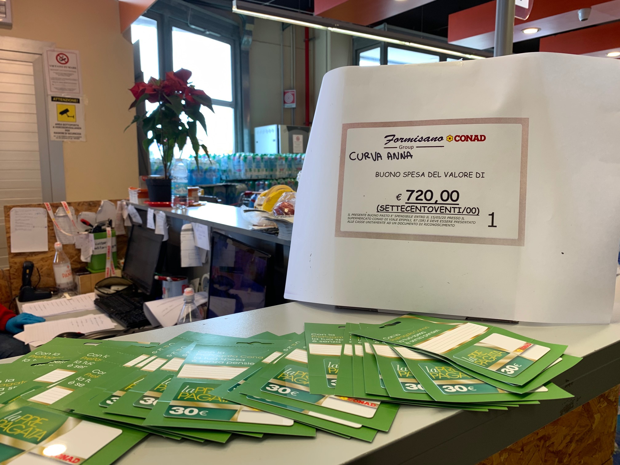 24 buoni spesa di 30 euro più un contributo in merce, offerto dal supermercato Conad, verranno distribuiti dagli stessi ultras aretusei affinché, in un momento di sconforto e di paure, possa tornare un piccolo sorriso soprattutto ad anziani e bambini.
