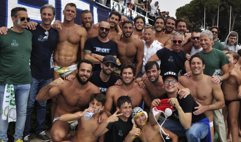In acqua, al termine, tutti i ragazzini delle giovanili che hanno voluto stringersi attorno ai propri idoli della prima squadra.