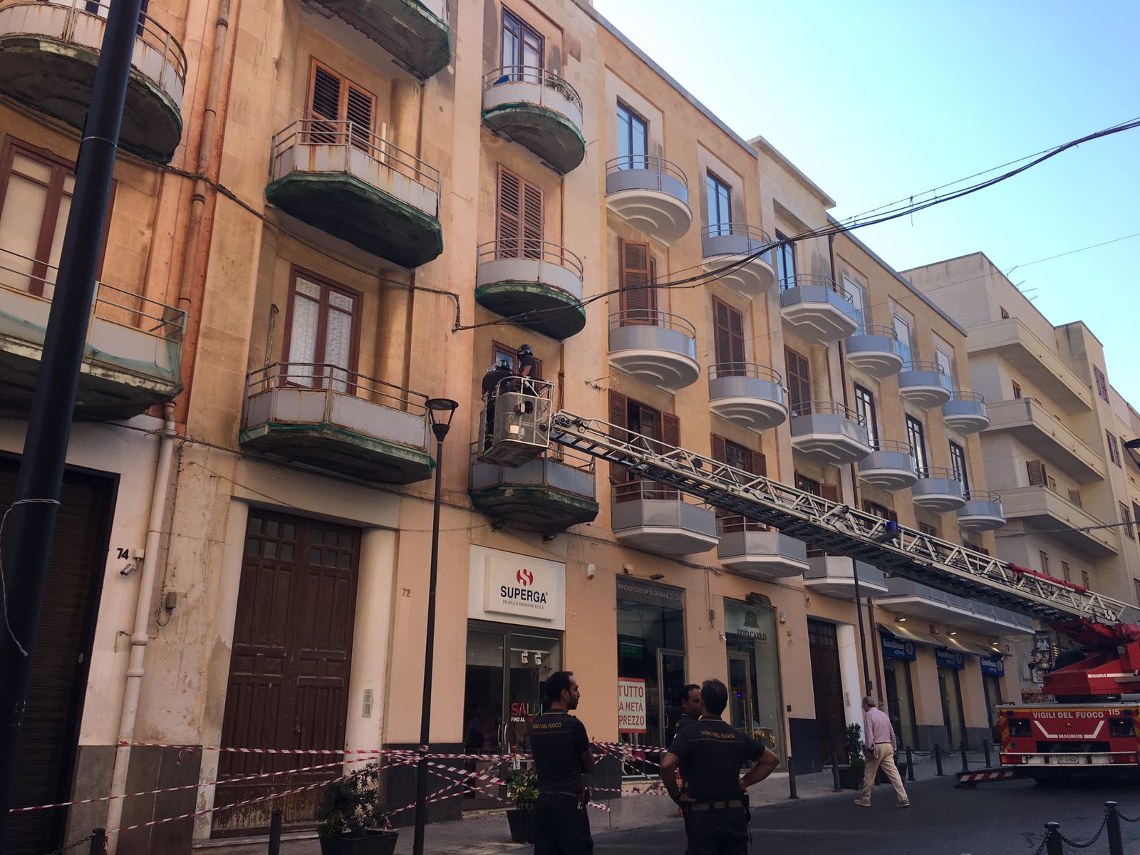 News: una caduta di calcinacci dalla facciata di un palazzo in corso Matteotti. Intorno alle ore 9.30 di questa mattina i vigili del fuoco sono stati chiamati a intervenire per mettere in sicurezza la zona. Una parte dell’intonaco della facciata si è sbriciolato ed è caduto sul marciapiedi. per fortuna in quel momento l’area era libera.