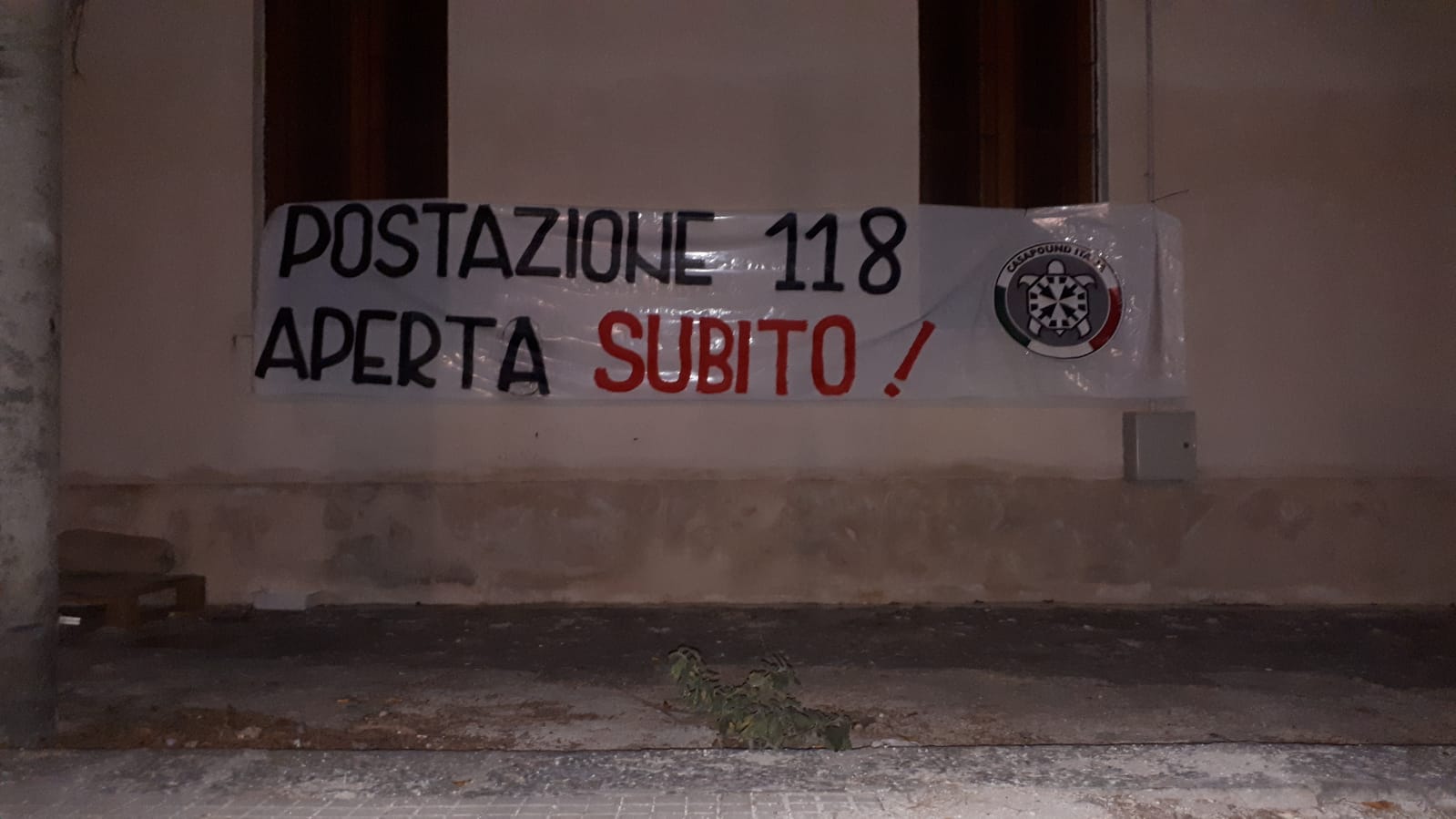 News Siracusa. Azione di protesta nella notte ad opera dei militanti siracusani di CasaPound Italia che hanno affisso uno striscione con su scritto “Postazione 118 aperta subito”, in aperta contestazione verso le politiche della nuova amministrazione, che ignora il problema.