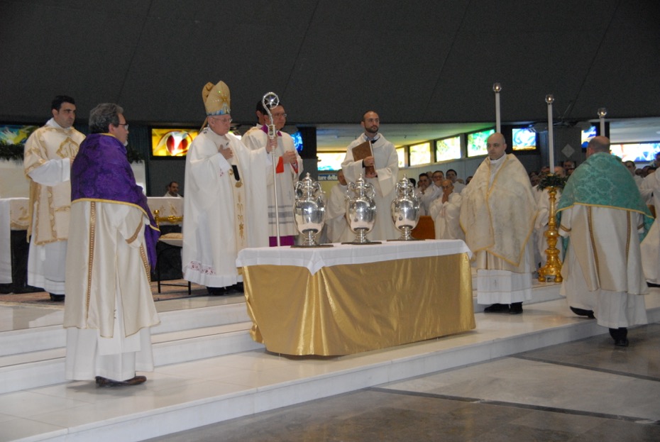 Durante la solenne liturgia sono stati benedetti gli oli santi. L’olio dei catecumeni, l’olio degli infermi e l’olio del Crisma. Nel corso della sua omelia, l’arcivescovo ha ricordato l’Anno Santo della Misericordia: “Lo stiamo celebrando nella ordinarietà della vita liturgica e pastorale propria delle nostre comunità ecclesiali, non trascurando, però, di percorrere quelle piste indicateci dal Papa che mirano a farci aprire il cuore alla misericordia divina per divenire noi stessi “misericordiosi come il Padre”.