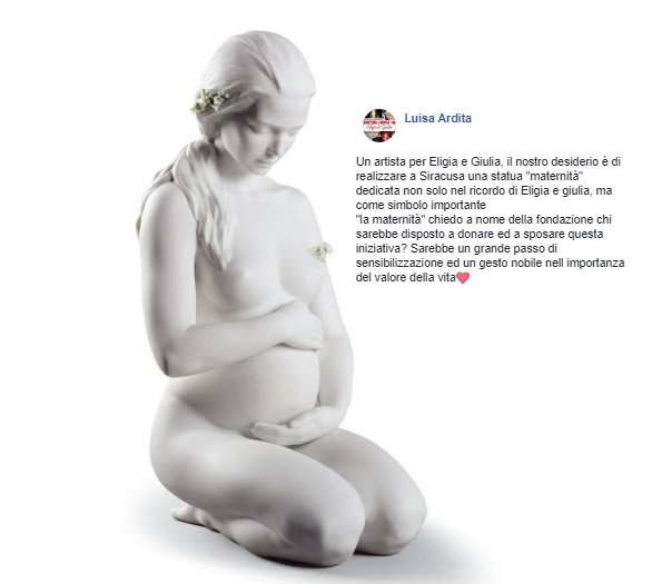 Siracusa. “Un artista per Eligia e Giulia, il nostro desiderio è di realizzare a Siracusa una statua “maternità” dedicata non solo nel ricordo di Eligia e Giulia, ma come simbolo importante “la maternità“. Con queste parole si nasconde il desiderio di Luisa Ardita, sorella di Eligia l’infermiera aretusea morta a seguito di una tragedia e di cui il marito (attualmente in carcere e imputato per omicidio) è ritenuto responsabile.