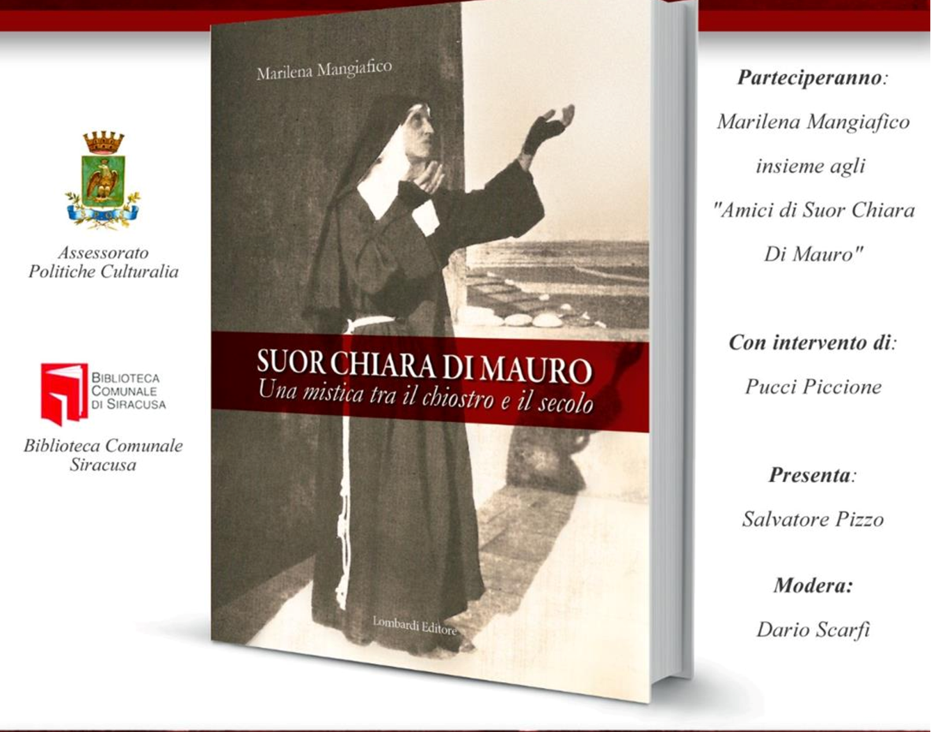 Giovedì 18 giugno alle 17.30 presentazione del volume “Le fonti d’archivio raccontano Suor Chiara Di Mauro” di Marilena Mangiafico. Daranno il loro contributo l’autrice e Pucci Piccione. L’incontro sarà presentato da Salvo Pizzo e moderato da Dario Scarfì.