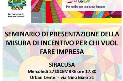 News Siracusa: si terrà mercoledì 27 dicembre alle ore 17.30 a Siracusa, nell’appena inaugurata sede dell’Urban Center in via Nino Bixio 31 il seminario di presentazione della misura di incentivo per chi vuole fare impresa nel Meridione d’Italia “Resto al Sud”, destinato agli under 35 residenti in Abruzzo, Basilicata, Calabria, Campania, Molise, Puglia, Sardegna e Sicilia.