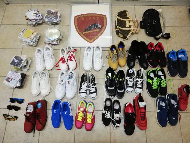 All’interno dell’appartamento gli operatori hanno rinvenuto della merce contraffatta destinata alla vendita al minuto (borse, scarpe e cd.) ed hanno denunciato N.M. (classe 1985) senegalese, per il reato di introduzione nello Stato e commercio di prodotti con segni falsi.