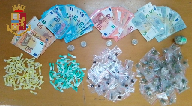 Grazie al supporto dell’unità cinofila “App”, i poliziotti hanno rinvenuto all’interno dell’androne del condominio di via Italia 103 sostanze stupefacenti di vario tipo (cocaina, marijuana e hascisc) e 750 euro, verosimilmente frutto dell’attività di spaccio.