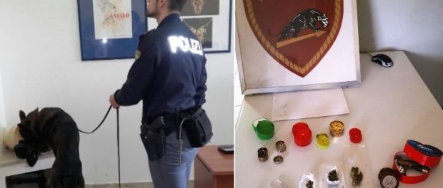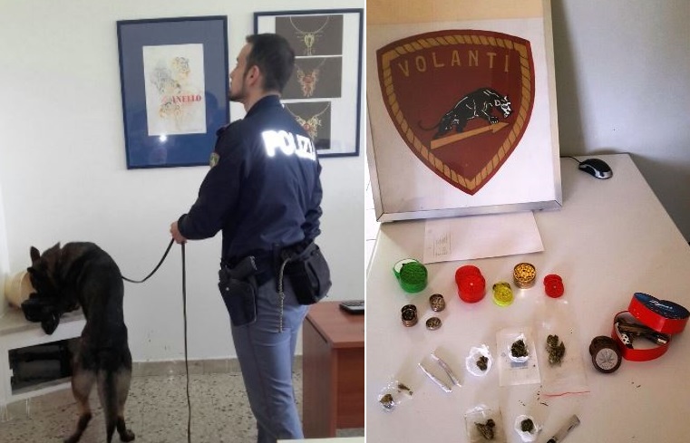 News Siracusa: nella mattinata di ieri, Agenti della Polizia di Stato, in servizio alle Volanti della Questura di Siracusa, coadiuvate da unità cinofile antidroga, hanno effettuato un servizio di prevenzione e controllo nei pressi ed all’interno di alcuni istituti scolastici superiori di Siracusa. Tale attività ha consentito il rinvenimento ed il sequestro di svariati involucri contenenti modiche quantità di sostanza stupefacente “marijuana” per un totale di circa 7 grammi, due sigarette di fabbricazione artigianale con minime quantità di analoga sostanza e svariati “grinder” (strumenti atti alla frammentazione e triturazione dello stupefacente). Il materiale sequestrato è stato rinvenuto all’interno di alcune classi, nelle parti comuni degli edifici scolastici ed in particolare nei bagni, nelle finestre e nei cortili.